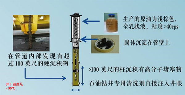 在石油鉆井作業中,進口、管線結蠟會產生極大危害,結蠟會縮小油管孔徑,增大抽油桿外徑,增加了油流阻力,使油井減產,嚴重時會把油井堵死,發生卡泵現象。亞地斯油氣集輸用清防蠟劑可以完美解決此問題。在海上鉆井使用,廢水同油漬分離后直接排入大海,不會對環境造成任何破壞。